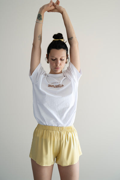 Questo pantalone in raso di seta italiana nasce come capo da casa o pigiama, ma ha l'eleganza e la leggerezza giusta per accompagnarti anche fuori, magari in una sera d'estate, con un sandalo sottile o una ciabattina