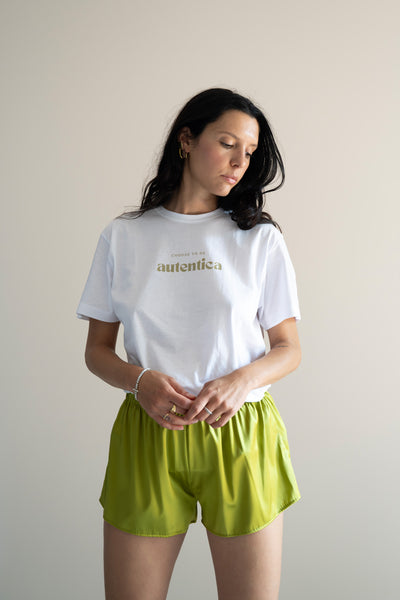 Semplice solo in apparenza, questa t-shirt in 100% cotone è l'anima viva del brand. La scritta “scegli di essere autentico” non è solo un dettaglio grafico: è un invito, una dichiarazione, una scelta quotidiana.
