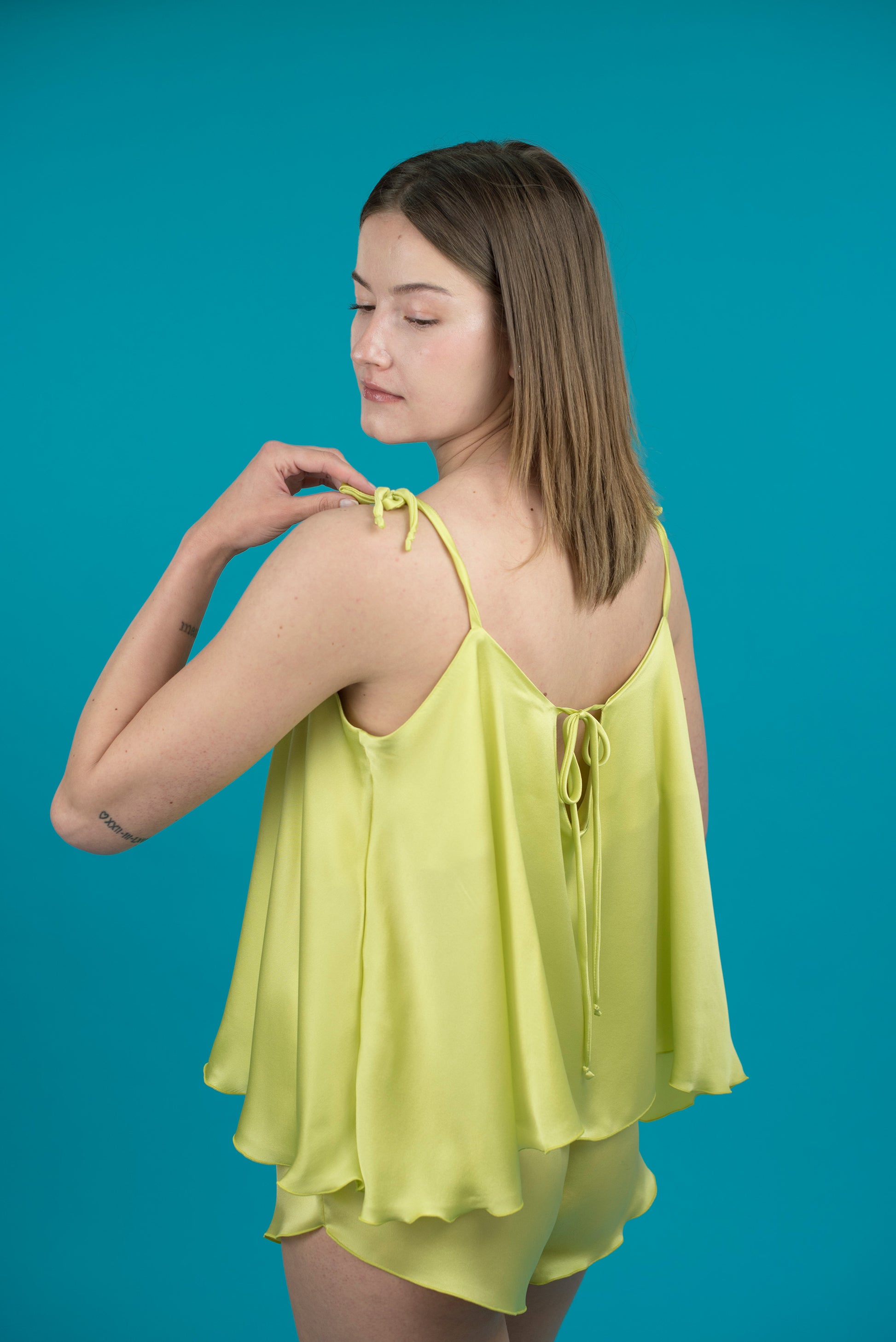 Il top Caracas in 100% seta è un top morbido, ampio, comodo, sexy da mostrare. Allo stesso tempo valorizza il corpo di ogni donna.
