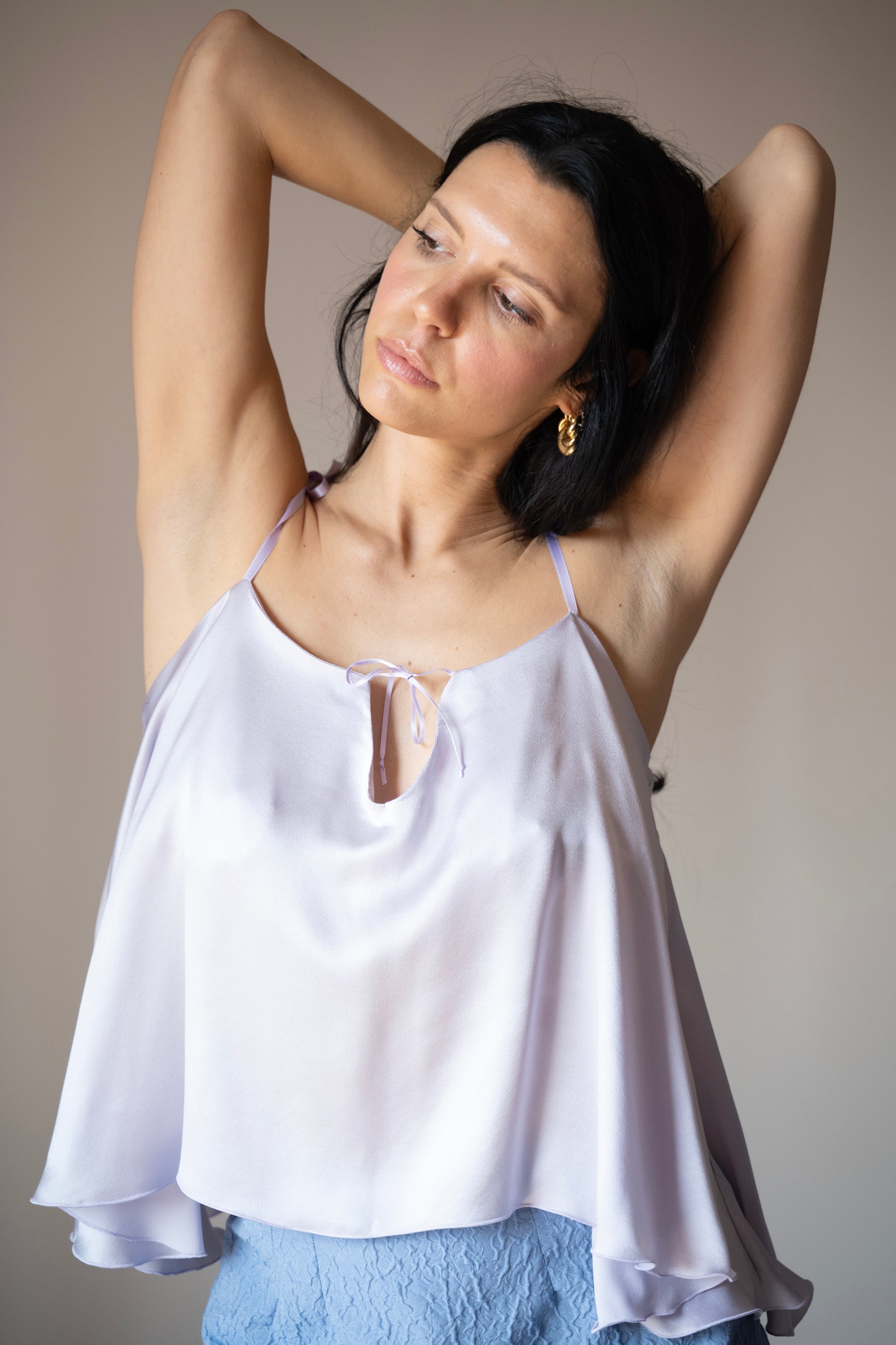 Il top Caracas in 100% seta è un top morbido, ampio, comodo, sexy da mostrare. Allo stesso tempo valorizza il corpo di ogni donna.